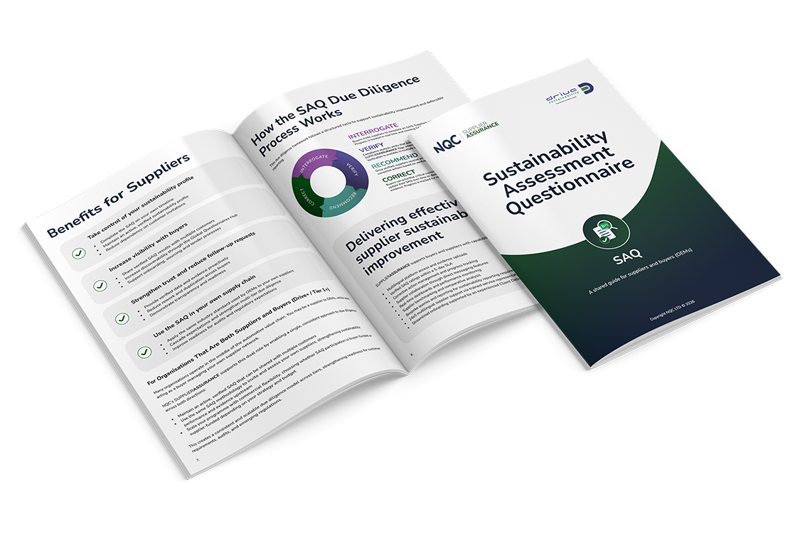 Download this guide to see how the Drive Sustainability SAQ, delivered through the NQC SUPPLIERASSURANCE platform, provides one framework for ESG data collection across your supply base. By reducing duplication, improving supplier engagement, and delivering comparable insights, it helps organisations strengthen due diligence, build transparency, and align with global standards.